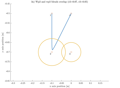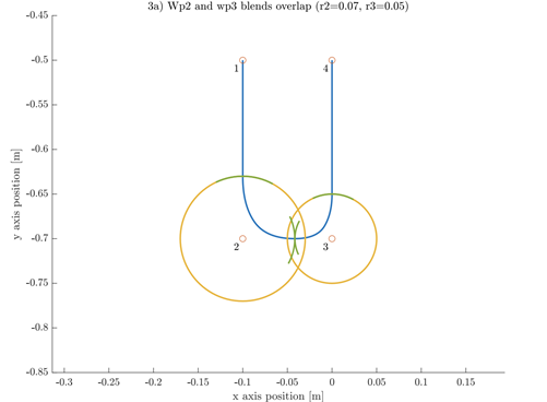Blend radii are dynamically adjusted to avoid overlap with other blends or waypoints for MoveJ and MoveL.