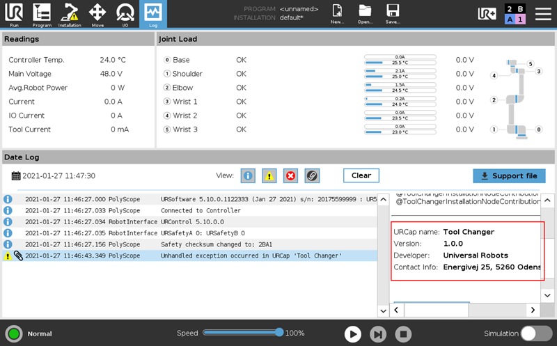 Improved the layout and information provided in the Log tab when an error occurs in a URCap.