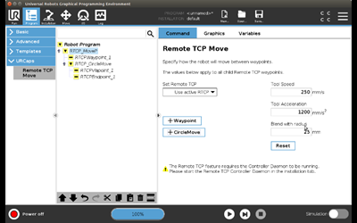 - Remote Tool Center Point: New Remote TCP URCap simplifies programming of applications that require the robot to move a picked object through positions relative to a fixed tool in the workspace, like deburring, sewing or dispensing. The Remote TCP can be configured in the Polyscope Installation Tab after the Remote TCP URCap has been activated. Activate the Remote TCP URCap by following the instructions under Settings>Systems>Robot Registration on the robot user interface.