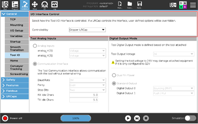 - The settings of the Tool I/O Interface can only be configured by the URCap controlling the Tool I/O Interface resource.