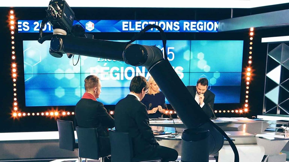 經(jīng)過(guò) 3 年的發(fā)展,國(guó)際主要集團(tuán)的電視工作室很多都部署了 ARCAM 機(jī)器人系統(tǒng),包括:美國(guó) (Riot Games)、中國(guó) (CTV)、歐洲(比利時(shí)、匈牙利、斯洛伐克、瑞士等)、法國(guó)(LCI、Equidia、Les Echos-Le Parisien 等),更是從一開(kāi)始就得到了 Cnews、InfosSport+ 和 Canal+ 的青睞。電視工作室之所以選擇 AR+ 解決方案,很大程度上是因?yàn)樗褂煤?jiǎn)單,尤其得益于系統(tǒng)中集成的 UR 機(jī)械臂,其本身非常易于編程。