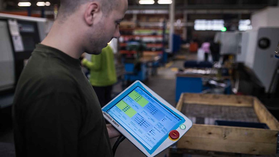公司員工無需守在數控機床旁,也不用執(zhí)行日常的零件上下料工作。他們只需向容器中裝入夠數小時使用的零件,然后隨機檢查任務狀態(tài)即可。與此同時,工人可以檢查其他機器的設置情況,解決可能發(fā)生的問題等。協(xié)作式機器人無需設置圍欄,也不需要額外的安全防護。優(yōu)傲機器人輕便小巧,移動方便,可以應業(yè)務的需要執(zhí)行新的任務。?