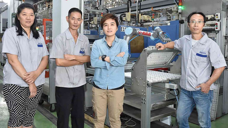 百泰齊股份有限公司在塑料注塑生產(chǎn)在線導(dǎo)入了四臺(tái)UR5協(xié)作型機(jī)器人,主要負(fù)責(zé)搬運(yùn)、碼垛跟夾取商品進(jìn)行檢測(cè)等環(huán)節(jié)。UR協(xié)作型機(jī)器人靈活的手臂跟編程能力,非常適合運(yùn)用在需要復(fù)雜人體工學(xué)的產(chǎn)線環(huán)節(jié)中,成功為百泰齊省下超過35%的人力成本,解決了因噪音等產(chǎn)線環(huán)境影響造成的嚴(yán)重缺工問題,并大幅降低工廠中的潛在職災(zāi)風(fēng)險(xiǎn);百泰齊目前有11%的生產(chǎn)制程由UR協(xié)作型機(jī)器人協(xié)助,其高度機(jī)動(dòng)性除為廠房帶來(lái)更多空間使用效益,更有利于公司保持營(yíng)運(yùn)跟策略制定彈性,以針對(duì)客戶少量多樣的生產(chǎn)要求實(shí)時(shí)調(diào)整產(chǎn)線,提供高質(zhì)量的客制化產(chǎn)品,優(yōu)化公司整體競(jìng)爭(zhēng)力。