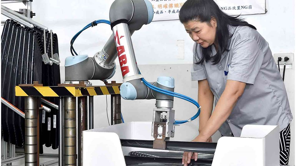 百泰齊原先已于產(chǎn)線中導(dǎo)入大型自動(dòng)化生產(chǎn)設(shè)備,然而大型工業(yè)用自動(dòng)化機(jī)具伴隨著噪音、所需安裝空間龐大、安全距離設(shè)置等風(fēng)險(xiǎn),以及人才招聘困難、嚴(yán)重缺工等問題,使得企業(yè)難以應(yīng)對(duì)因生產(chǎn)量增加后更高的生產(chǎn)彈性需求。因此,百泰齊希望藉由導(dǎo)入能靈活調(diào)整制程且低安全風(fēng)險(xiǎn)的協(xié)作型機(jī)器人,彌補(bǔ)人才缺口,也同事也希望能通過可人機(jī)協(xié)作的特點(diǎn),重新分配產(chǎn)線人力資源、優(yōu)化生產(chǎn)效能,并降低職業(yè)傷害風(fēng)險(xiǎn),為員工打造更友善、安心的作業(yè)環(huán)境。