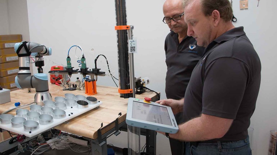 Creating Revolutions 是一家位于邁阿密的初創(chuàng)公司,其生產(chǎn)的酒店服務(wù)尋呼機(jī)廢品率高達(dá)兩位數(shù)?,F(xiàn)在,它采用 UR3 協(xié)作式機(jī)器人處理焊接、鉆孔、點(diǎn)膠和照明總成,并通過所連接的云系統(tǒng)中進(jìn)行監(jiān)控,幾乎實(shí)現(xiàn)了零廢品率,生產(chǎn)效率提高了近五倍。