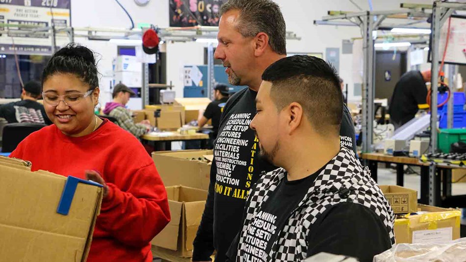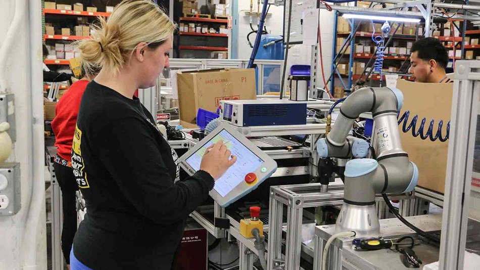 Darex首次采購協(xié)作式機(jī)器人時(shí),生產(chǎn)主管想了很多調(diào)動(dòng)員工熱情,讓大家愛上操作機(jī)器人的方法。他還需要找一個(gè)專職的機(jī)器人技術(shù)員,負(fù)責(zé)檢查生產(chǎn)線上所有機(jī)器人的運(yùn)行情況。Griffin表示:“所以,我想到了競聘這個(gè)辦法。我把優(yōu)傲學(xué)院的網(wǎng)址告知了所有人,告訴他們可以自行學(xué)習(xí)網(wǎng)課,然后我會根據(jù)學(xué)習(xí)內(nèi)容給他們安排考試,讓大家競聘上崗?!眱?yōu)傲學(xué)院提供9個(gè)交互式在線模塊,介紹了優(yōu)傲協(xié)作式機(jī)器人的基礎(chǔ)編程和設(shè)置知識。Darex舉辦了數(shù)輪比賽,考題便是為協(xié)作式機(jī)器人編程。26歲的Brittany Mohrman過關(guān)斬將,成功脫穎而出?!拔液芟矚g接觸新鮮事物,所以我就參加了這次競聘,認(rèn)真學(xué)習(xí)了相關(guān)知識,希望能一舉奪魁。優(yōu)傲學(xué)院的課程內(nèi)容包括理解各種程序周期、調(diào)整路點(diǎn)變化,以及確定機(jī)器人工具重心的位置?,F(xiàn)在,我的工作有趣多了?!?/p>