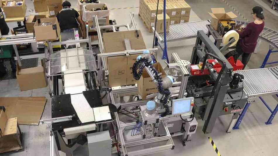 Darex是一家位于俄勒岡州阿什蘭的第四代家族企業(yè),公司需要在不招人的前提下提高產(chǎn)能。Darex的運(yùn)營總監(jiān)John Griffin表示,阿什蘭地區(qū)正面臨著“招工難”的窘境,他說:“我需要用同等的資源做更多的事情?!盌arex還需要一種節(jié)省空間的解決方案。Griffin希望引入機(jī)器人,自動(dòng)化磨刀機(jī)塑料外殼組裝中的螺絲緊固,以及開箱和裝箱工序,他說:“我們的生產(chǎn)空間有限,所以我們不想單獨(dú)建立一個(gè)工作區(qū),更希望能直接集成到我們的生產(chǎn)線中?!惫驹敬蛩闶褂瞄_箱機(jī)張開紙箱。Griffin表示:“但他們工作量肯定不會飽和,而且能處理的紙箱類型也不多,我們想提高靈活性。”
