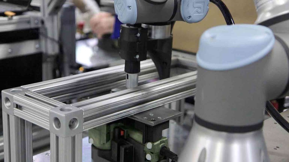 啟動(dòng)自動(dòng)化項(xiàng)目時(shí),磨刀機(jī)的組裝工作是一個(gè)領(lǐng)域。Griffin說:“在之前的操作中,我們的操作員用手持式氣動(dòng)螺絲刀從螺絲送料器上取下一個(gè)螺絲,然后將其插入機(jī)床,旋至特定扭矩,這個(gè)過程非常單調(diào),而且很累人。”為了將操作員從這種枯燥的工作中解放出來,Darex選擇了UR3桌面協(xié)作式機(jī)器人。公司將螺絲送料器和氣動(dòng)螺絲刀都保留了下來;不同的是執(zhí)行任務(wù)的主體由操作員變成了協(xié)作式機(jī)器人。Darex公司的生產(chǎn)工程主管Sam Jacobson告訴我們,有時(shí)外殼上的孔難以察覺,所以操作員可能會漏掉一些。他說:“UR3每次都會一個(gè)孔不落的安裝螺絲,如果出現(xiàn)漏裝的情況,它會第一時(shí)間通知我們。引入?yún)f(xié)作式機(jī)器人后,我們的產(chǎn)品質(zhì)量的確大有改觀?!?/p>