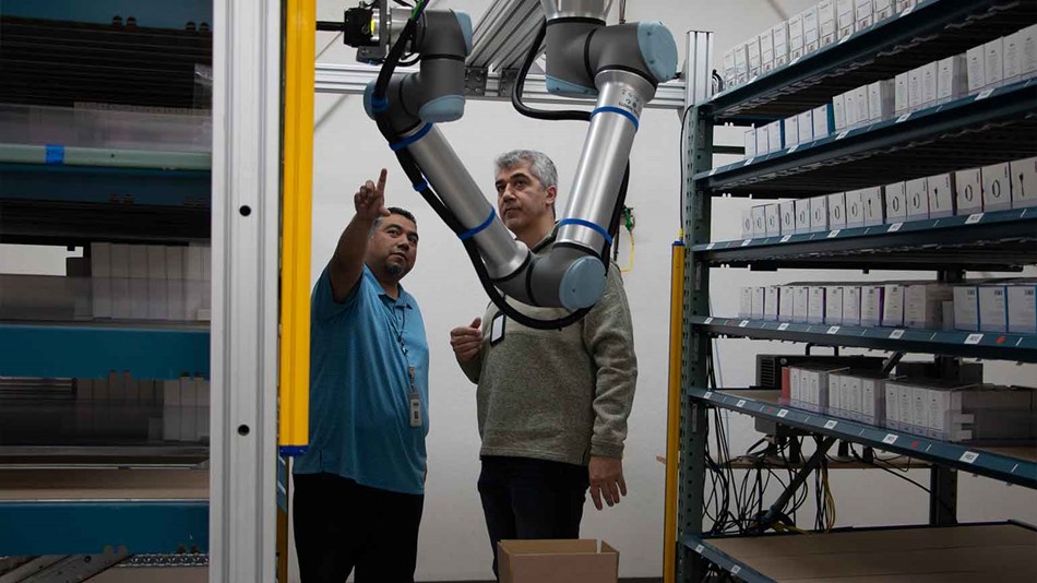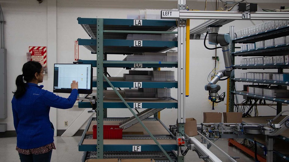 DCL Logistics的自動(dòng)化工程師Isaac Toscano解釋說(shuō),這種自動(dòng)化生產(chǎn)線對(duì)工人來(lái)說(shuō)也是一個(gè)福音。他說(shuō):“在我們的工作流程中,訂單通常會(huì)在晚上不斷堆積。員工們?cè)缟掀饋?lái)啟動(dòng)機(jī)器,就會(huì)看到大量的不同訂單。但機(jī)器人能為他們減輕很大的負(fù)擔(dān),因此,他們總是催我們趕緊啟動(dòng)機(jī)器人,讓機(jī)器人準(zhǔn)備就緒。在季節(jié)性的需求飆升期間情況尤為如此,比如感恩節(jié)后的“黑色星期五”。在“黑色星期五”當(dāng)天,優(yōu)傲機(jī)器人在一天內(nèi)就處理了4400份訂單,只需少數(shù)幾位員工來(lái)確保零件得到補(bǔ)充,機(jī)器人就可以持續(xù)不停地工作。