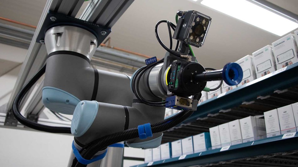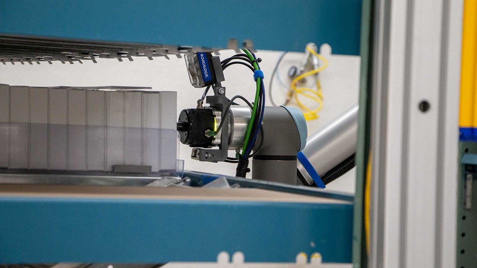 DCL Logistics的自動(dòng)化團(tuán)隊(duì)通過(guò)同時(shí)使用?UR+在線平臺(tái) 和模擬器來(lái)研究和選擇適合應(yīng)用的外圍設(shè)備。每個(gè)UR+產(chǎn)品都經(jīng)過(guò)了測(cè)試和認(rèn)證,加上附帶的UR CAPS軟件讓整個(gè)流程實(shí)現(xiàn)即插即用,而無(wú)需學(xué)習(xí)機(jī)器人命令。DCL選擇了一個(gè)?Piab piCOBOT 夾具 和一個(gè)?DataLogic 攝像機(jī)?,其中DataLogic攝像機(jī)可同時(shí)掃描多個(gè)條形碼,或掃描單個(gè)零件號(hào)和單個(gè)序列號(hào)。