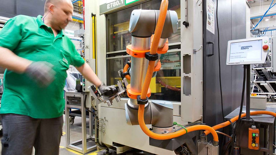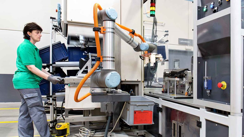 德國跨國集團(tuán)MANN+HUMMEL的西班牙子公司啟用了三臺(tái)優(yōu)傲協(xié)作式機(jī)器人,以優(yōu)化汽車零部件的制造工序。在不增加人工成本、不超量生產(chǎn)零件的前提下,協(xié)作式機(jī)器人與操作員通過在高精度機(jī)床進(jìn)給任務(wù)中并肩工作,提升了公司的產(chǎn)能。