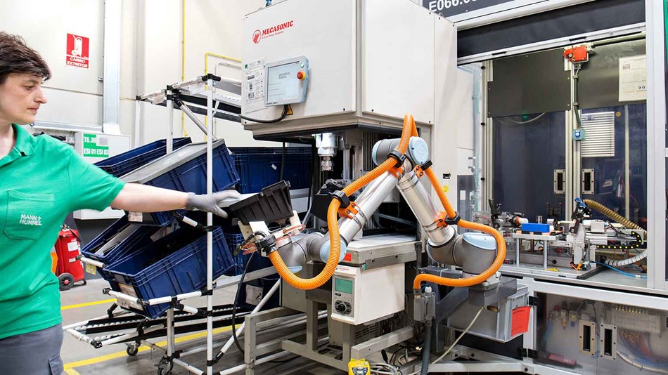 三臺(tái)配有優(yōu)傲機(jī)器人的協(xié)作式應(yīng)用幫助汽車供應(yīng)商MANN+HUMMEL IBéRICA提高產(chǎn)能,優(yōu)化資源配置