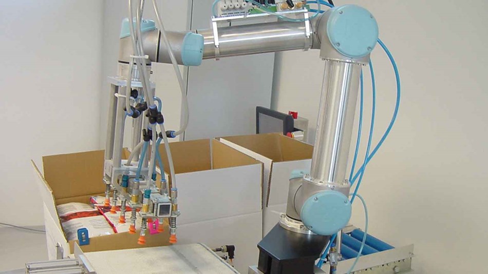畜牧業(yè)生殖技術(shù)系統(tǒng)先進(jìn)供應(yīng)商 Minitüb一直在尋找標(biāo)準(zhǔn)化、自動化的封裝解決方案。手工勞動重復(fù)而單調(diào),而且無法以恒定的速度進(jìn)行。其采用了輕型六軸 UR5 機(jī)械臂,不僅能夠以恒定的速度封裝袋子,還極少需要維護(hù)。
