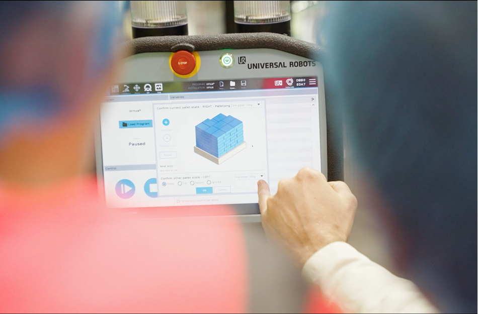 而Robotiq用于碼垛應(yīng)用的專用軟件——物料搬運Copilot——也為用戶提供了友好的操作界面。與需要大量編程的傳統(tǒng)機(jī)器人不同,操作UR20的碼垛搬運,甚至不需要任何編程基礎(chǔ),利用內(nèi)嵌的操作模塊選項,即可快速直接地進(jìn)行各種參數(shù)設(shè)置。