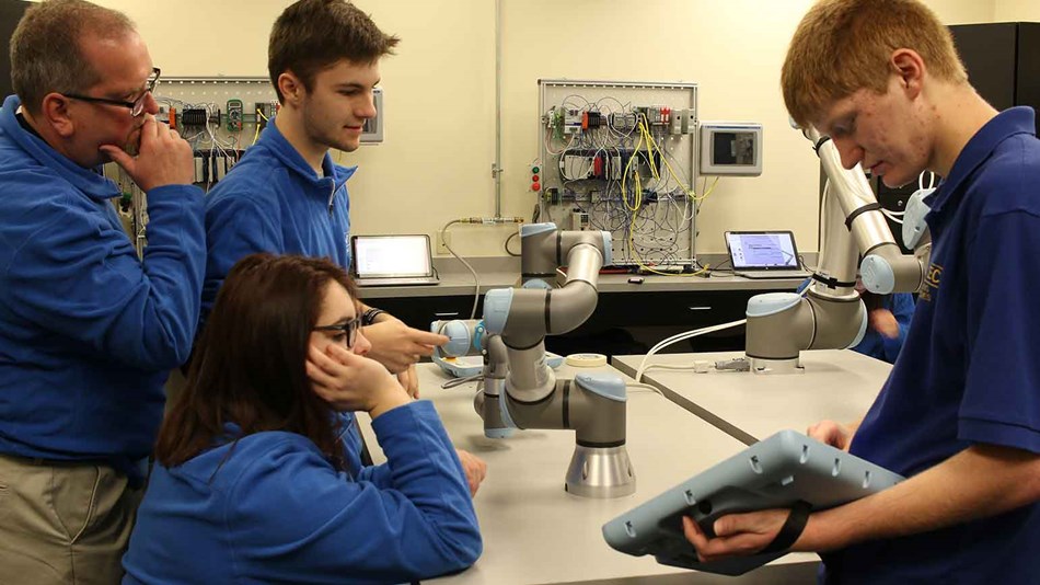 RAMTEC中心位于俄亥俄州馬里昂機(jī)械制造中心,這里有一大批工業(yè)代表為RAMTEC投資,并參與制定該校課程。當(dāng)本地企業(yè)開始引進(jìn)協(xié)作式機(jī)器人時(shí),引起了 RAMTEC 的注意。