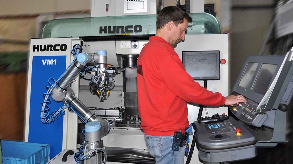 現(xiàn)在,機器人在晚上承擔了全部小型系列的銑削工作,根本無需人工互動。它打開兩個閘口,供送原材料,用虎鉗將其固定,從銑床上取下,放在旁邊。這使員工從單調的搬運工作中解放出來,從事更具有挑戰(zhàn)性的工作。